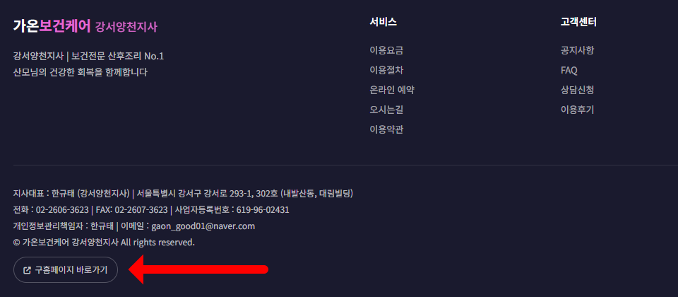 ●기존 홈페이지의 주소는 아래와 같으며 메인 화면의 하단 부에 클릭으로도 이동을 하실 수 있습니다. https://gaongood01.mycafe24.com/